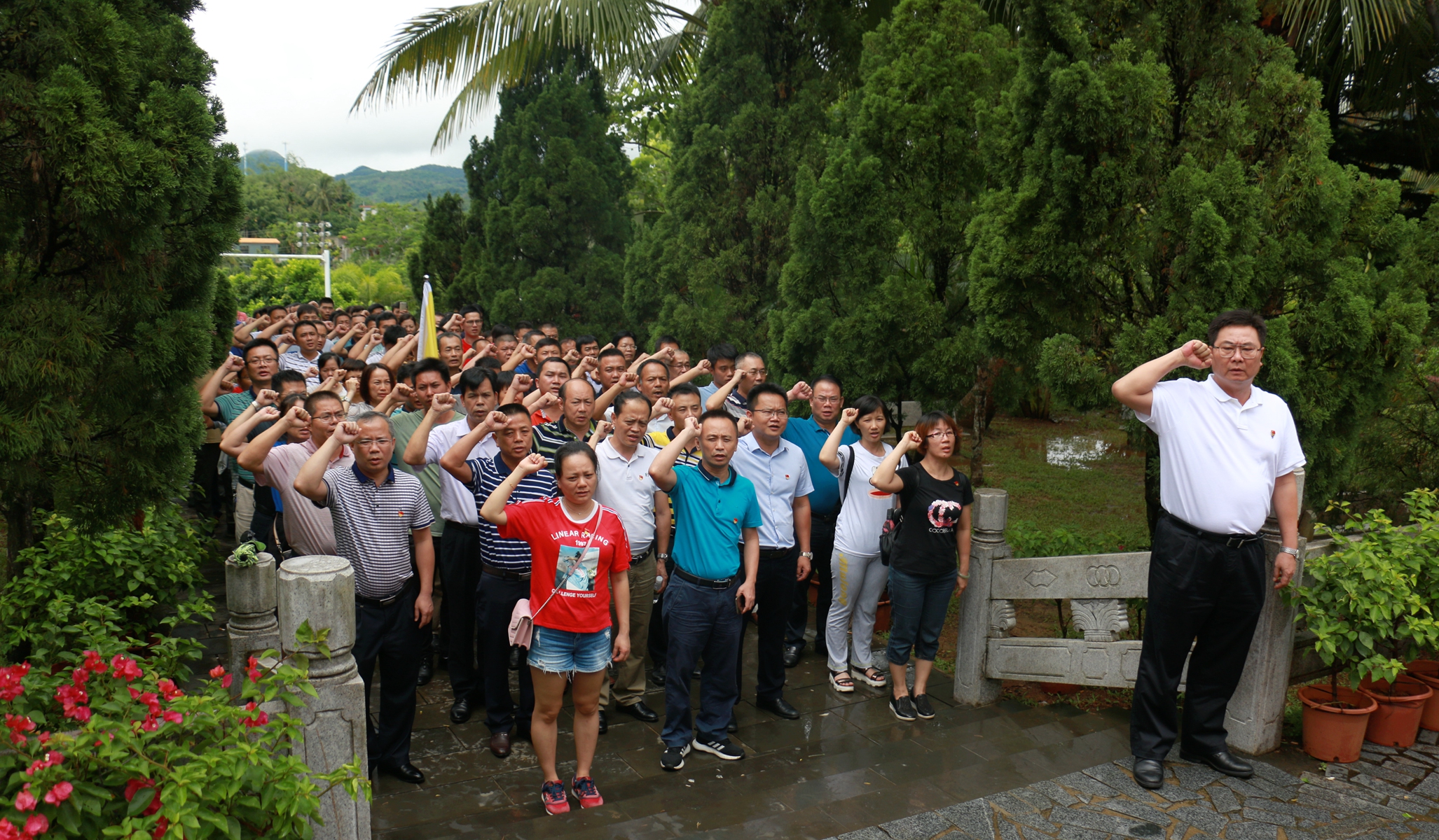 为庆祝中国共产党建党98周年,进一步坚定党员信念、锤炼党员党性,7月2日,省路桥乐竞平台党委组织乐竞平台系统全体党员、入党发展对象约100人到定安母瑞山革命根据地纪念园,开展“不忘初心、牢记使命”革命传统体验教育活动暨“坚守初心当先锋、践行使命作贡献”主题党日活动,缅怀革命先烈,探寻革命足迹,传承革命基因,弘扬革命精神。