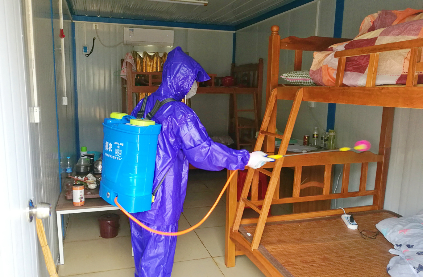 每日定期对各办公区域、小区、指挥部和项目部进行消毒。